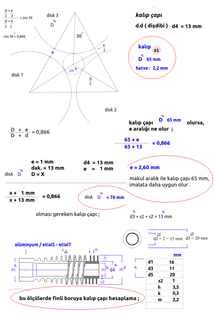 Boru için kalıp çapı hesaplaması ;